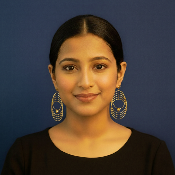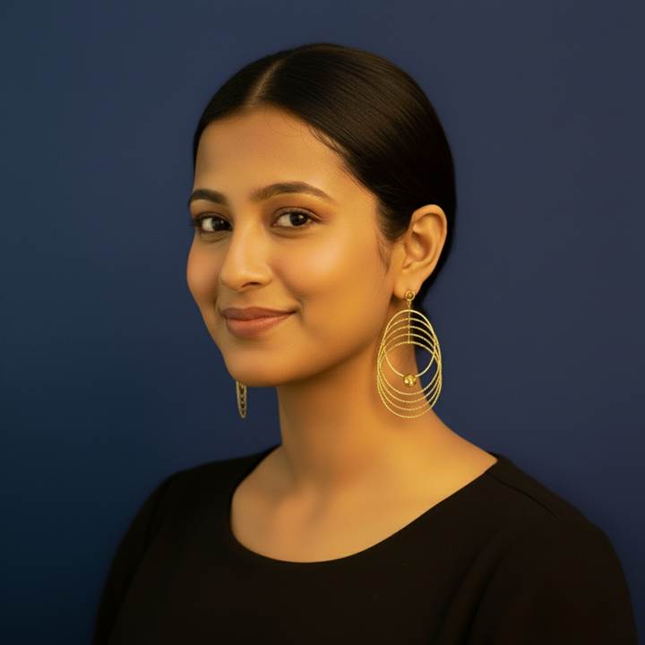 If you prefer everyday styling, they look perfect with turtlenecks, maxi dresses, and ethnic kurtis. The gold tone complements all skin tones and blends beautifully with makeup shades like bronze, nude, or peach.
